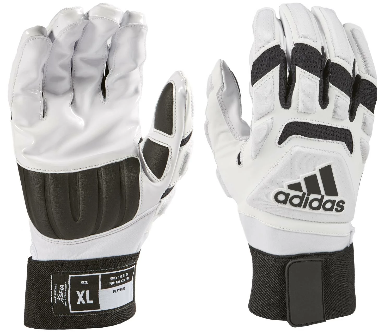The Adidas Freak Max 2.0 Adult Football Lineman Gloves feature a fully padded backhand with extra padding on the palm that provides ultimate protection and impact absorption without sacrificing your hand mobility. The +adidas TECHFIT multi-dimensional fabric perfectly adapts to the shape and structure of your hand to create an exceptional, second-skin fit, and the wide wrist band offers extra wrist support and adjusts for the perfect fit. Plus, the adidas-exclusive GRIPTACK palm gives you consistent grip and excellent control in all weather conditions.
