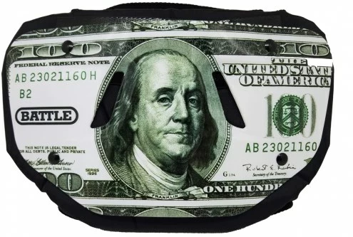 If your game is on the money than the Battle Sports Benjamin Adult Football Back Plate should be part of your gear. The back plate shows off a $100 bill with Ben Franklin’s +face on it, and when opponents are chasing you down the field, they’ll know there’s no catching you. Unlike standard back plates, Battle’s version is curved, making it more comfortable and helping it disperse more energy. The reliable protection easily fastens to any shoulder pads with durable attachment straps.