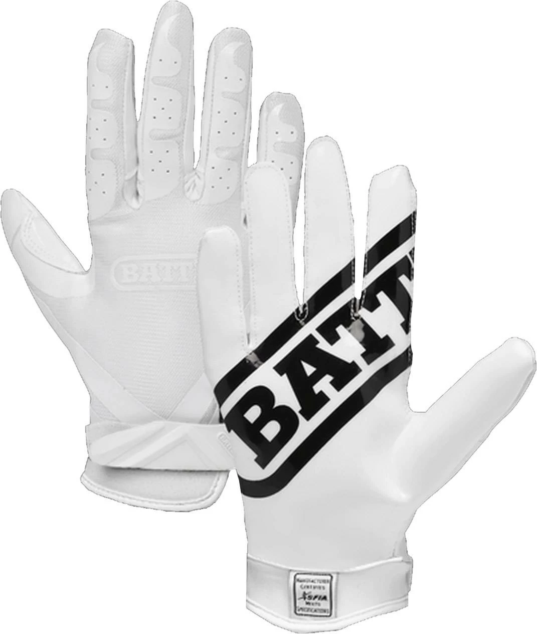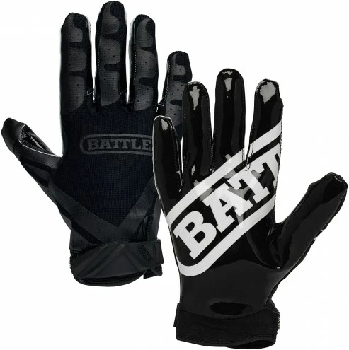 *Item is missing original packaging. We can ensure it still performs as new. Questions? Call 1-800-693-6368 The Battle Sports Double Threat Youth Receiver Gloves are built to last. The new design has reinforced +stitching and wear point that help the gloves hold up longer. Made with super-sticky UltraTack palms, the gloves push right up to the edge of the legal stick limit. They provide a comfortable fit and feel thanks to Battle’s PerfectFit material and a wrist design that gives you freedom of motion.