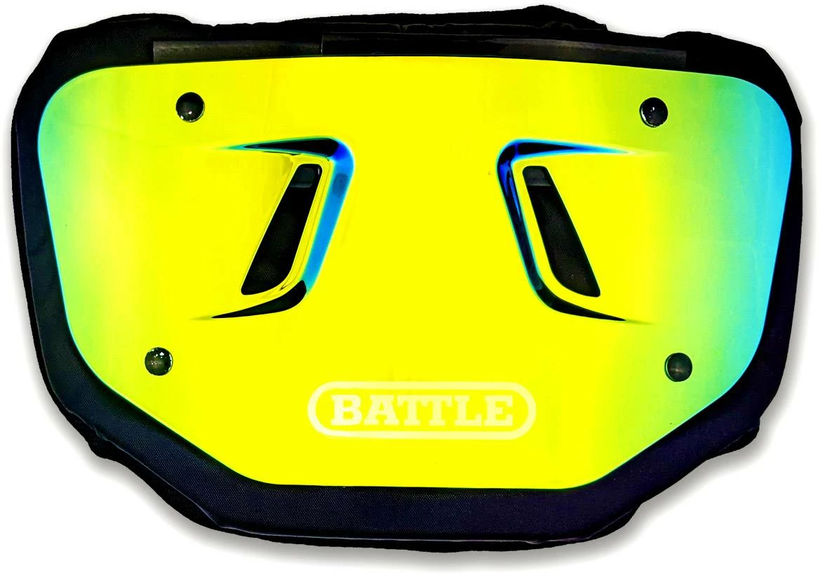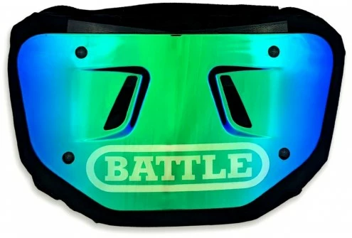 The Battle Sports Prism Adult Football Back Plate looks good from any angle. The iradescent coloring gives the backplate a great look and will show different colors in different light. Unlike standard back +plates, Battle’s version is curved, making it more comfortable and helping it disperse more energy. The reliable protection easily fastens to any shoulder pads with durable attachment straps.