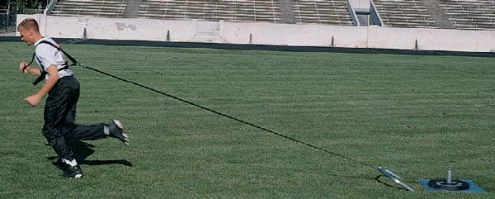 The Blazer Quick Explode Sled Football Trainer improves power and explosions on the football field. Comes with quick release, adjustable resistance harness (fits small to XXL). Sled constructed of heavy galvanized steel. Will +fit standard or Olympic plates.