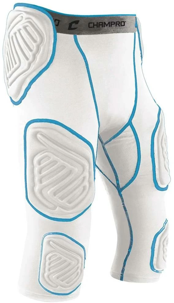 The Champro Bull-Rush Adult 7 Pad Integrated Football Girdle offers all around protection. The high compression polyester/spandex fabric keeps the girdle in place so the pads can do their job of protecting the +right parts. DRI-GEAR will wick away the moisture as you sweat to keep you dry and focused on the play. The low profile on the garment minimizes the amount of weight that the athlete carries while maximizing protection including padding that wraps around to offer full coverage to the thighs. This girdle offers additonal protection, incorporating two additional pads to the lower part of the thigh into the knee for extra support. Choose a girdle that will cushion and conserve your body so you can keep playing the game you love!