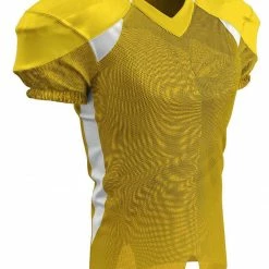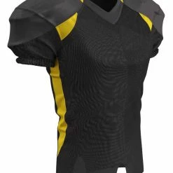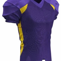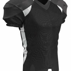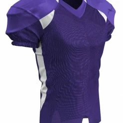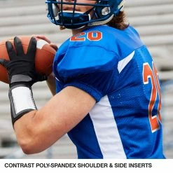 The Champro Huddle Custom Football Jersey is designed with 100% stretch polyester for superior mobility and a great fit on the field. Double ply yoke, upper sleeves and neck plus bar-tacked stress points +increases the durability for all season use. The full length body with motion vents enhances breathability while ensuring your jersey stays tucked in. Color contrast sides, back neck and front inserts to a fast look on the gridiron. Customize yours now!