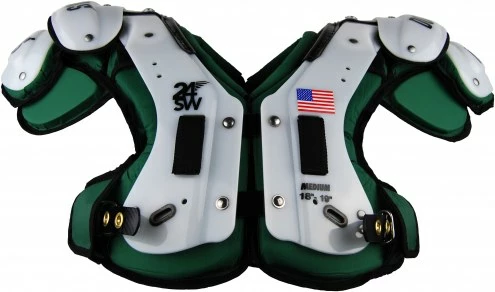 Don’t sacrifice protection or field of vision when you choose the Douglas CP 24SW Flat Football Shoulder Pad – QB / WR / RB / DB. This pad is built for mobility with +a cut-away shell and a streamlined design for flexibility. The smaller cut of the epaulets and arches keep the weight down and allows your arms to move freely.