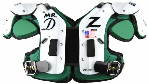 The Douglas CP Series Mr DZ Adult Football Shoulder Pads – Offensive Linemen / Defensive Linemen is an elite-level pad, designed for ultimate protection and performance on the grid iron. With a low-profile +flat pad and lightweight open-cell design, you get the impact protection you need to make and take the big hits, and the speed and agility you need to keep on moving through them. Perfect for O line or D line players, the Mr. DZ delivers redundant top cushions and an extra wide neck hole, absorbing more hits and giving you a wider field of vision, so you never miss a thing out there.