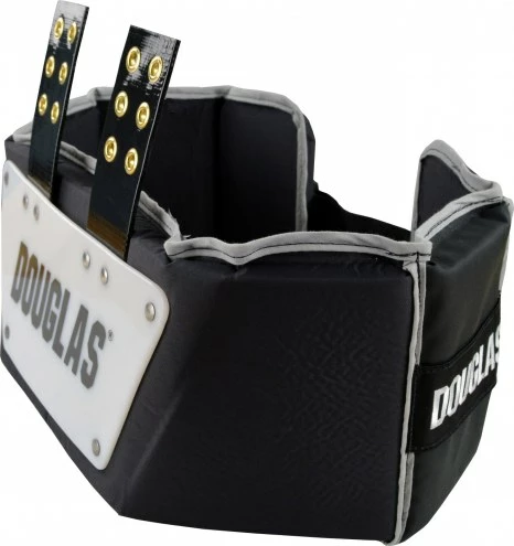 Extend your protection all the way around your lower torso with the Douglas Custom Pro Rib Combo Football Rib Protector w/o Plastic – 6 inch. Ideal for quarterbacks and running backs, the rib +combo secures to the back of your shoulder pads like a back plate, and also includes wrap around padding. Unlike the traditional model with rigid plastic around the sides, this version relies only on the closed cell foam, giving you more flexiblity. Extra grommet holes in the back allow you to adjust the height for maximum comfort and coverage.