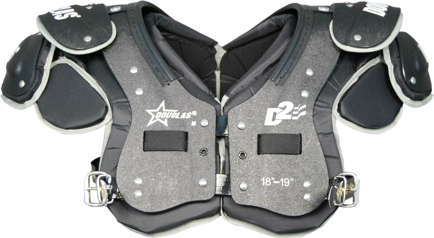 Get all the range of motion you need with the Douglas Destroyer 2.0 Q22 Adult Skill Football Shoulder Pads – QB / WR / RB / DB. Built with Douglas’ Air Management system, +the pads combine open cell foam and streamlined plastic to give you protection without sacrificing flexibility. The cantilevered design disperses energy on contact to the chest or back of a player. Smaller epaulets, reverse cups and a swivel front mean that whether you’re throwing or receiving passes, you’ll have a pad designed to move with you.