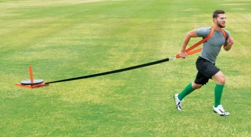The Fisher 25″ x 16″ Football Pull Sled helps develop leg and upper body strength. Constructed of powder coated 14 gauge steel that moves smoothly over grass or turf. Holds 5 olympic size +weights. Improve your speed and conditioning on the field!