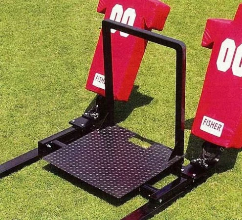 The Fisher Coaches Platform for Football Sleds allows an up front, in the action view of drills and provides the feel of impact for coaches and trainers. The 30″ x 30″ platform is +constructed of steel diamond for a non-slip surface and excellent durability. A 36″ high O.D. hand rail is also included to provide coaches with stability. This coaches platform is sold separately and does not include the actual football sled.