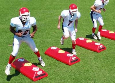 The Fisher Direct Step Football Agility Dummy is designed to improve a player’s agility and mobility. Comes with three sets of multi-colored arrows to allow players to react (step) to colored cadence calls. +It features a rolled polyfoam core that won’t sag with age or rigorous training. Constructed with an 18 oz. double-sided vinyl coated nylon covering with carry handles. Backed by a one year manufacturer’s warranty.
