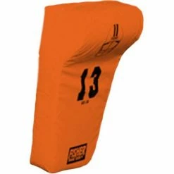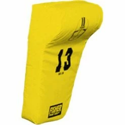 The Fisher HD130 T-Shield Football Shield features a large hitting surface for linebacker drills or offensive line passing drills. The T-shape allows hitting players to force upwards developing proper technique. This football shield +is constructed of die cut 100 ILD foam that will keep its shape through years of blows and beatings. Sturdy web handles with foam inserts and box X tack for a sure grip. Coated with 18 oz vinyl with block numbers and helmet printed on the front for target points. Light, easy to hold and control.