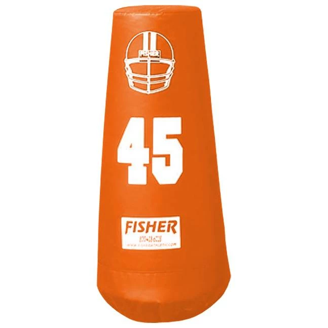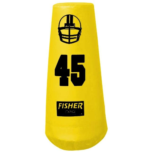 The Fisher Junior Football Pop-Up Dummy is designed to speed up drills and allow for more repetitions as if there were extra assistants or players during your practices. This dummy is constructed of +a three-layer, 18 oz. vinyl base and an 18 oz. vinyl body to assure a long life of the roughest drills. A rubber protected base won’t bruise or sting a player’s lower body and features the right amount of weight to allow the dummy to properly pop back up. Includes four handles for ease of transport.