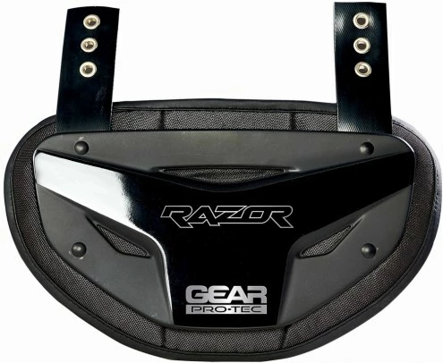 Extend the protection of your shoulder pads with the Gear Pro-Tec Razor Football Back Plate – 12″ x 7″. A larger back plate built for players requiring more protection, this pad features some +of the same cutting edge technology found in the Razor shoulder pads. The compressed HEX foam side panels and SAS-TEC foam spine work together to provide maximum protection, while a corrugated exterior adds strength. Attaches to Razor, Z-Cool and most other shoulder pads with universal T-nut and screw attachment.