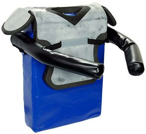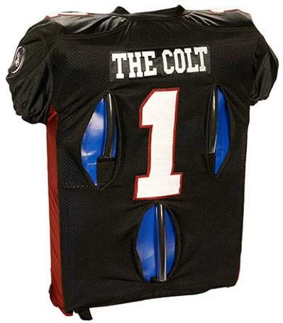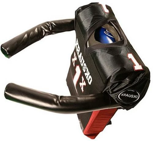 Krausko knows that a defensive lineman never stands still, so they brought you the Krausko Colt Pro Football Blocking Pad with Arms that lets you practice the way you play. It was constructed +using a steel frame with a flex-foam shield and spring-loaded, steel combination arms for striking, and it has a foam-backed polyethylene breast plate that acts more realistically like an opponent’s chest so you can incorporate more realistic game movement into your practice. The jersey was marked with an x at legal grab points to more effectively train muscle memory, and the arms help players get low and inside to master the correct hand placement and leverage. This blocking pad forces your players to use their hands while maintaining spatial integrity, and it allows game-speed drills, unlike traditional blocking sleds. Great practice for offensive line, defensive line, WR, linebacker, defensive backs, special teams, and tackling!