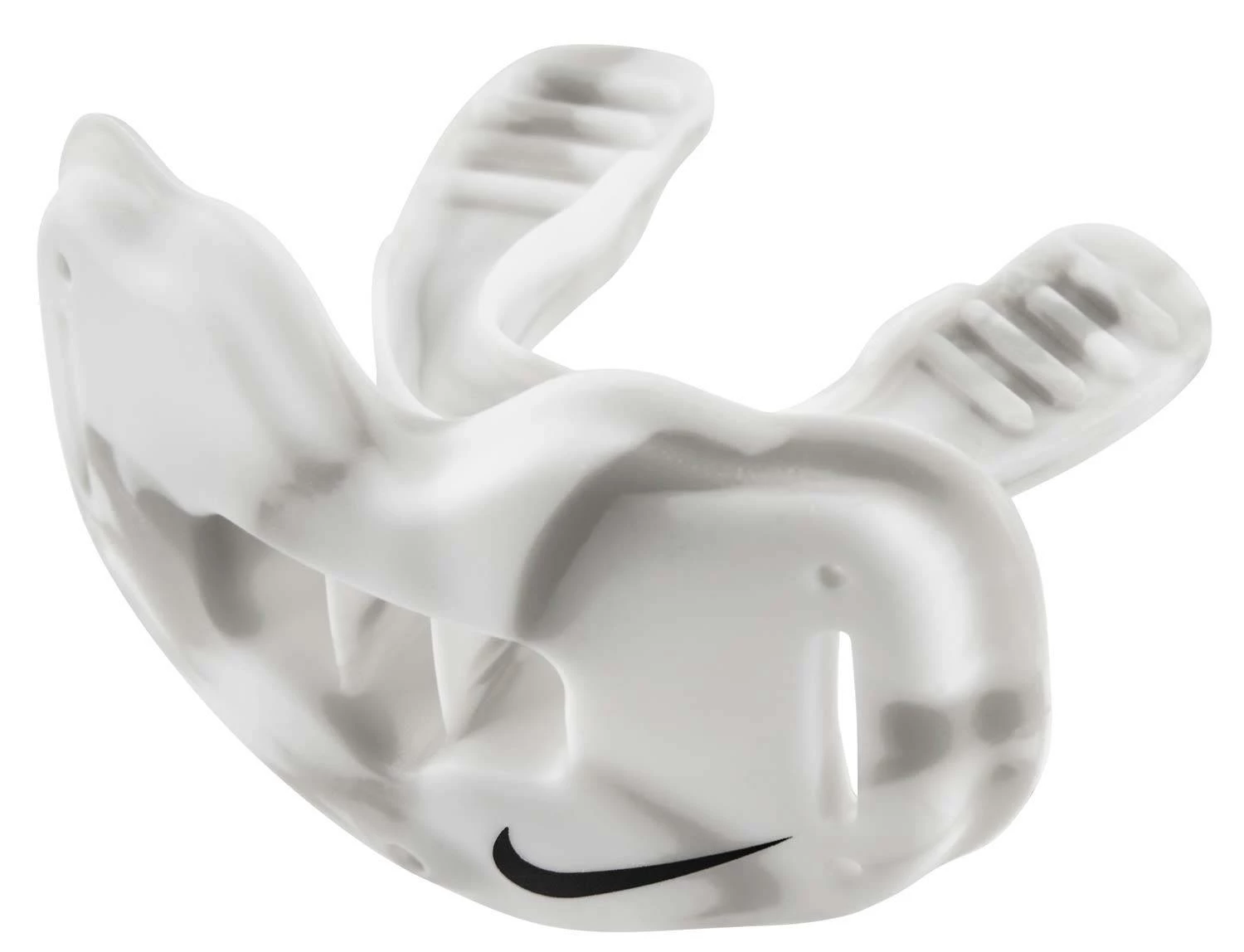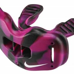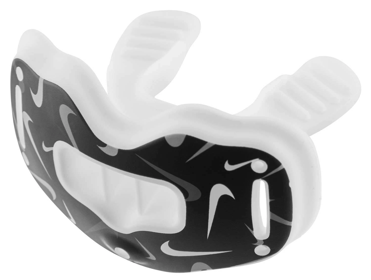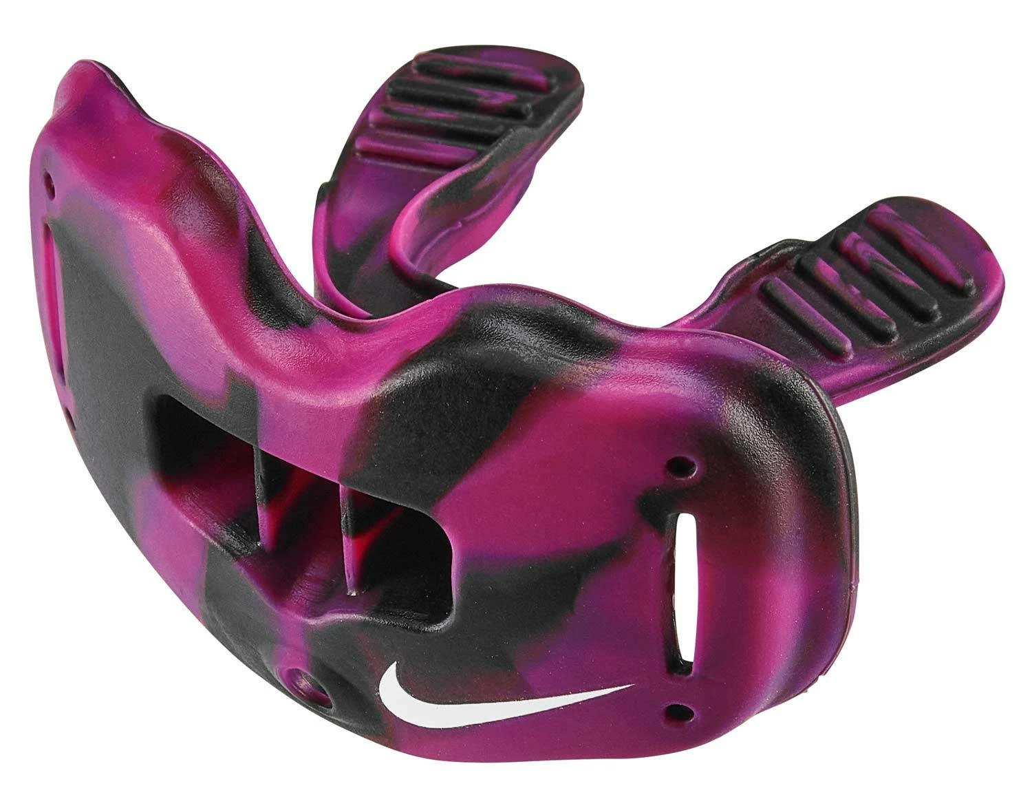 The Nike Alpha Youth Lip Protector Mouthguard features a lip-protecting design that absorbs shock for comfort and peace of mind. No need to boil or mold, this mouthguard comes ready to use and +has O-Flow breathing channels for maximum oxygen instake. A quick-release tether allows you take it out quickly for communicating on the field.