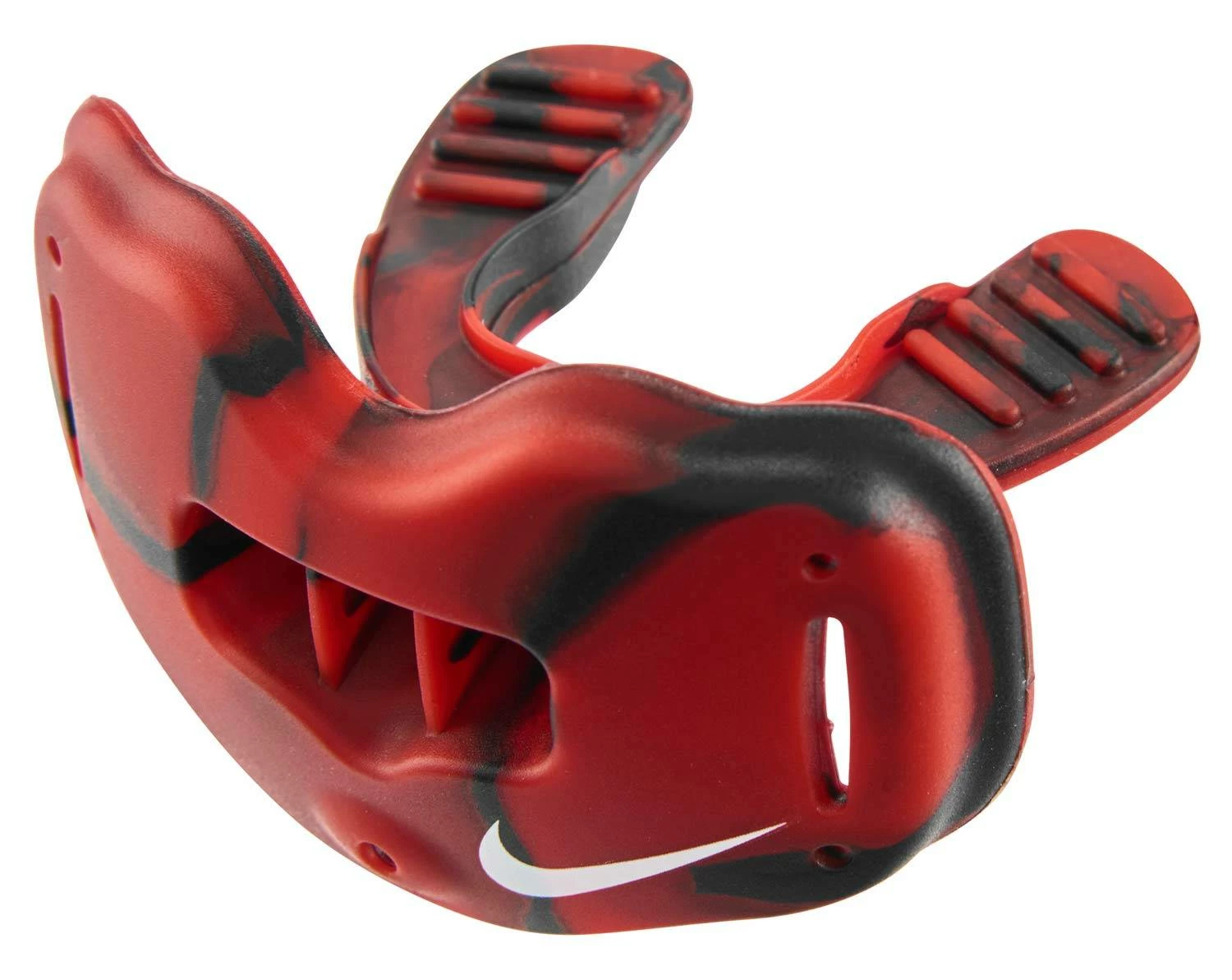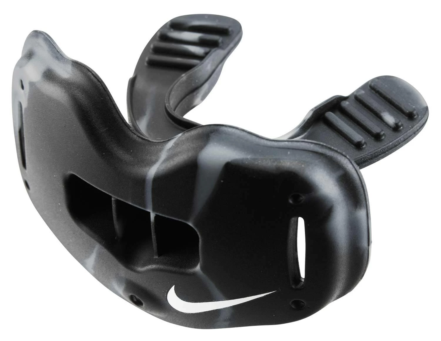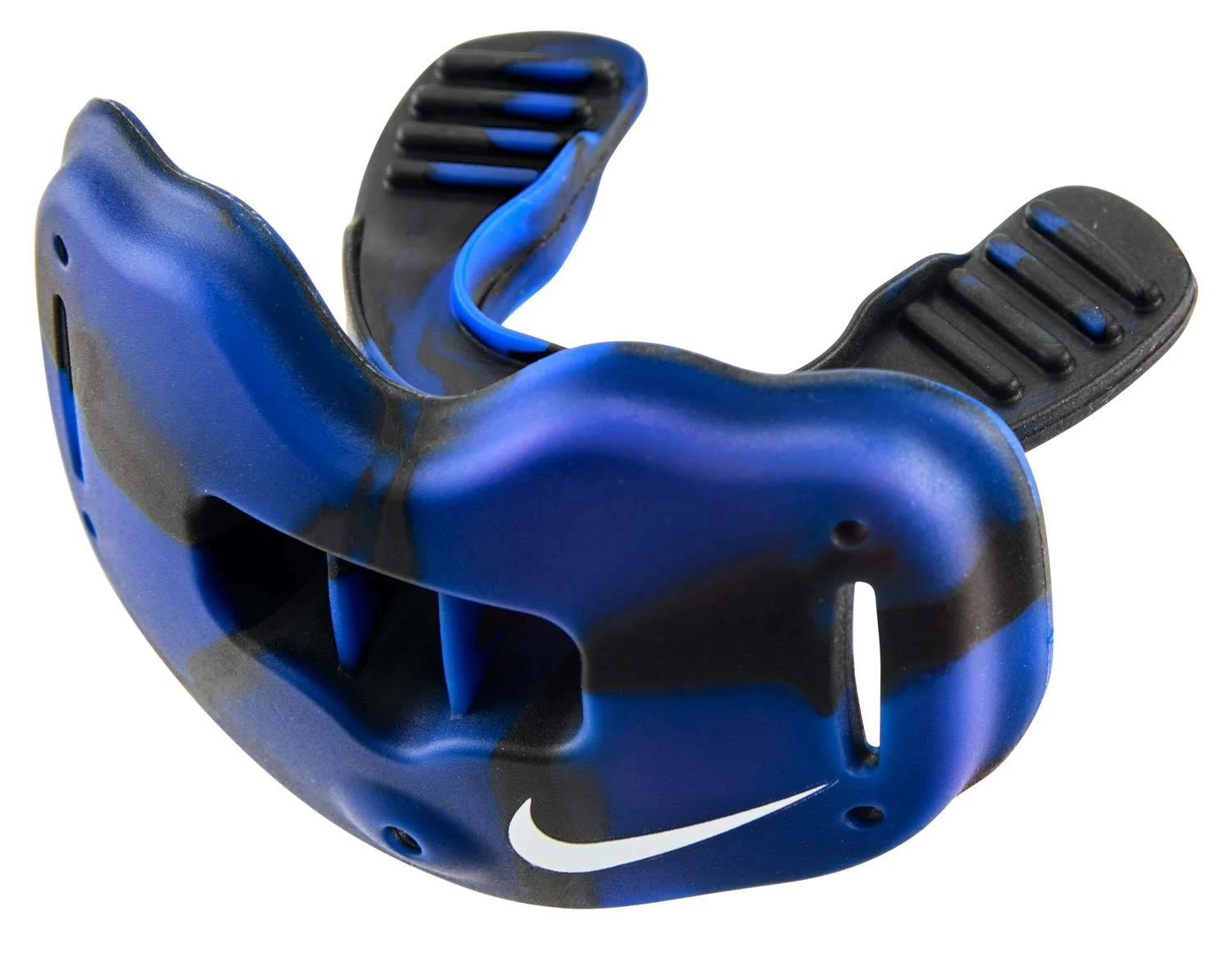 The Nike Alpha Youth Lip Protector Mouthguard features a lip-protecting design that absorbs shock for comfort and peace of mind. No need to boil or mold, this mouthguard comes ready to use and +has O-Flow breathing channels for maximum oxygen instake. A quick-release tether allows you take it out quickly for communicating on the field.