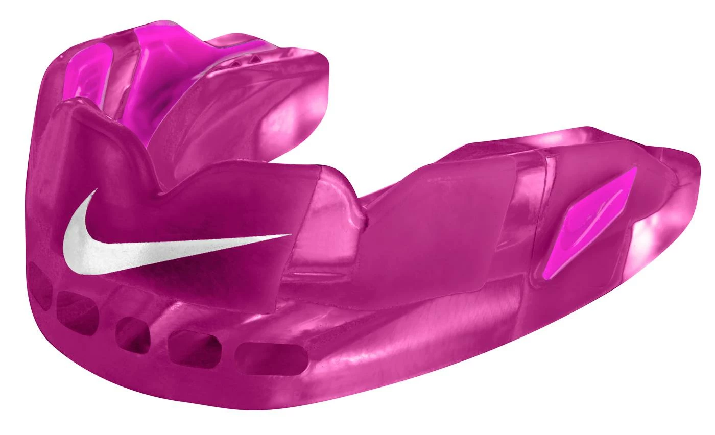 Savor a sweet taste all game long with the Nike Hyperflow Flavored Adult Mouthguard. It features flavor technology that lasts game after game while protecting your teeth and jaws from impacts. Modable EVA +material provides cushioning and a custom fit. O-Flow breathing channels allow for maximum oxygen intake. Quick release tether included.