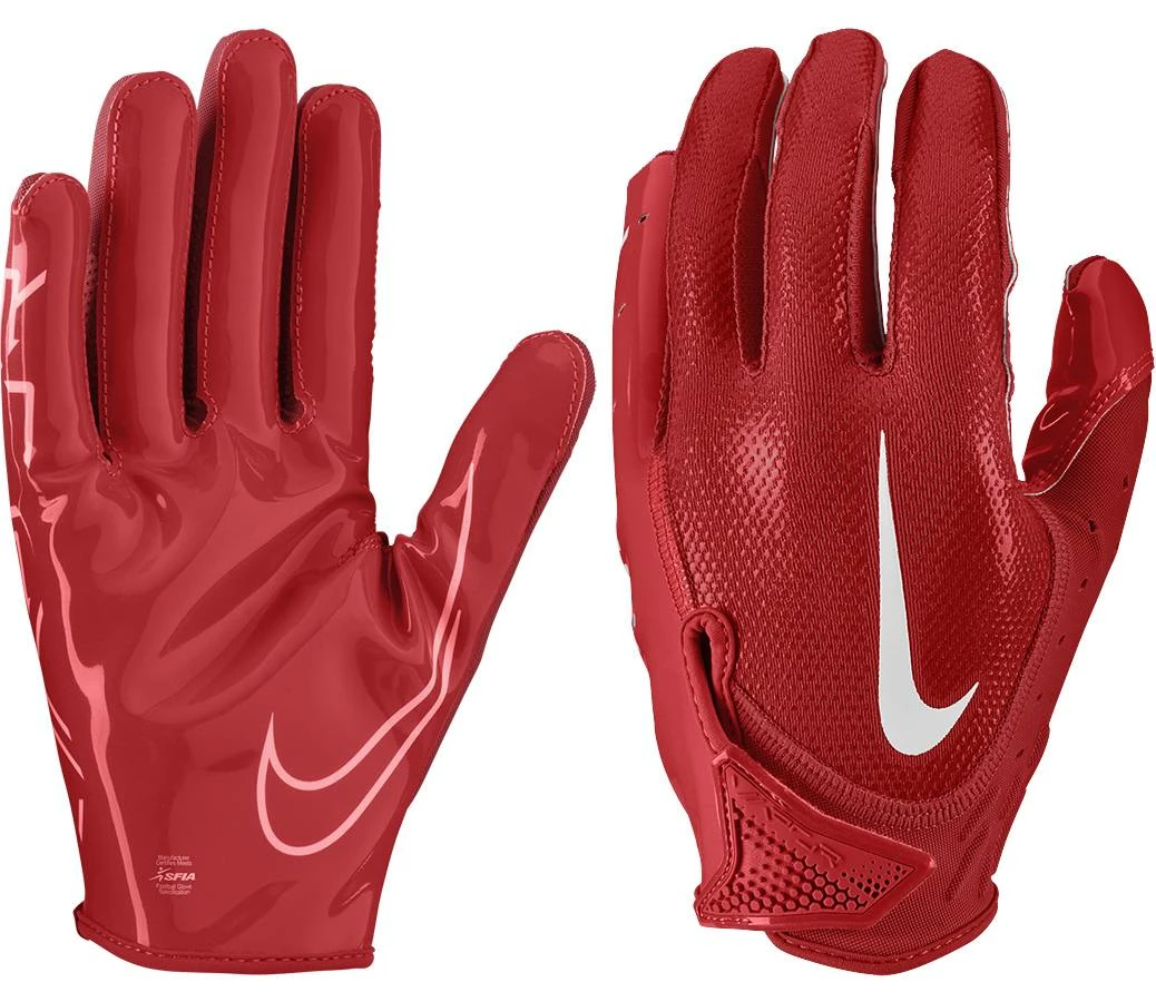 The newest member of the Vapor Jet family, the Nike Vapor Jet 7.0 Adult Football Gloves are ready for all-out play. Improved Magnigrip+ material helps you make game-saving catches, while a breathable design +and adjustable cuff keeps your hands comfortable all game long.