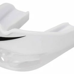 The Nike Alpha Youth Mouthguard lets air flow whether your mouth is open or closed, with extended breathing channels. A moldable boil-and-bite design gives you a personalized fit, while comfortable, flexible material lets +you focus on your game. The quick-release strap lets you take it out quickly so you can communicate clearly.