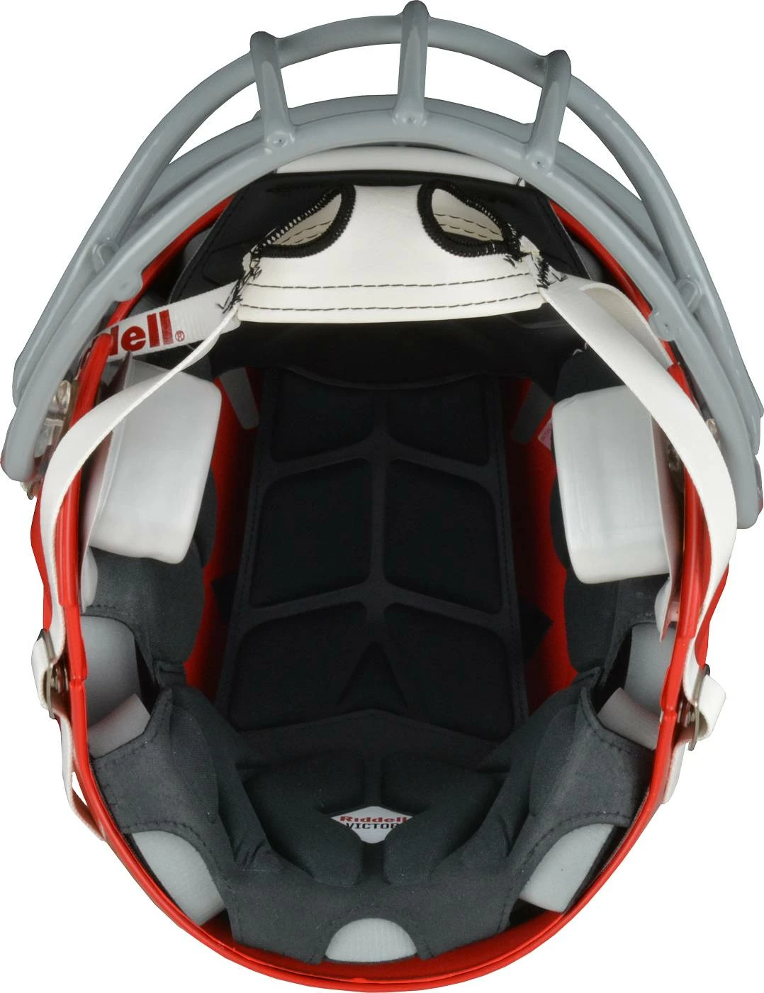 A more comfortable fit in the same great package makes the Riddell Victor Youth Football Helmet with Facemask a great choice for the upcoming season. Designed using the same shell as the Riddell +Revo Speed and other Riddell helmets, the Victor upgrades the popular Attack line. Like its predecessor, the Victor includes foam padding that keeps the weight down. What separates it is a comfortable overliner that offers some additional padding and will help conform to the different head shapes of youth players. The overliner is removable and made from cloth, with a vinyl front pad cover. Inflatable jaw pads and an attached S2B facemask included.