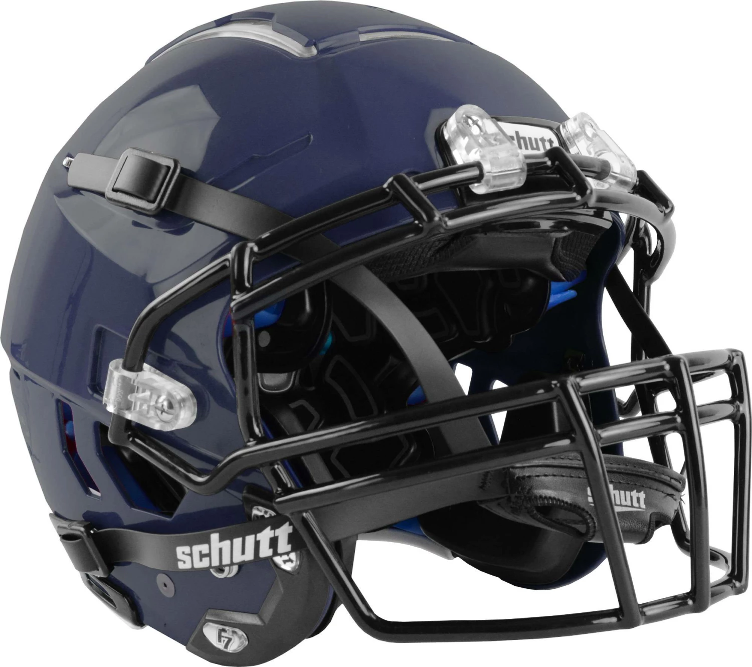 Built with the youth player in mind, the Schutt F7 LX1 Youth Football Helmet gives you the look of the increasingly popular F7 with features designed to cut down on the weight. The +LX1 uses the same F7 shell with 3DM Tektonic Plate Technology that is meant to absorb more energy on hits to the helmet. It’s built with the same Flexural Resistant Back Shelf and included the same five layers of energy dispersion as the full featured model. It even uses the same facemasks. The difference comes in the weight, where the LX1 is more youth friendly .15 lbs lighter. Schutt did that by removing the nose bumper and replacing it with traditional clear loop straps at the top of the helmet and taking out the internal cheek stabilizers. The interior is changed only in the lateral liner, where a SureFit air liner replaces the Radial Diffusion Liner. The liner is built with an increased number of pods to give it a more secure feel than other liners. The multi-layered front pad contains a mix of TPU, poron and comfort foam to give the helmet a feel that players will love. Combined with the striking look, it’s a great choice for any youth player.