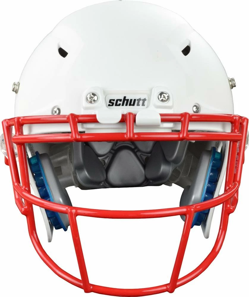 The Schutt Vengeance has never been a traditional football helmet, but for those who prefer a more traditional look, the Schutt Vengeance Classic ROPO-SW-TRAD-NB Carbon Steel Football Facemask offers a tried and true +style. The No Brow design eliminates the protruding eyebrows on the top of the facemask, instead opting for a more standard straight bar. Modeled to look like facemasks in the DNA and Super Pro line, the No Brow designs are preferred by players at the top level of football. Quarterbacks and other skill players opt for the ROPO-SW-TRAD for its open design that promotes a wide field of vision. It’s unobtrusive with only a single bar across the middle and a favorite of many top players.