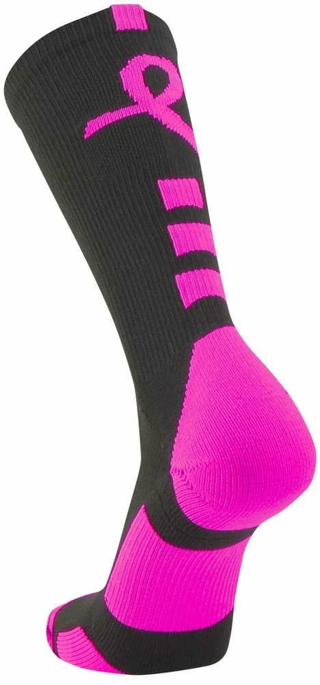 Help raise breast cancer awareness in these comfortable Twin City Baseline Breast Cancer Awareness Crew Socks! They were designed with arch compression to help with foot fatigue and circulation and have built-in moisture +control technology to keep your feet cool and dry, and they even help prevent blisters. Great for basketball, lacrosse, football, volleyball, or wrestling!