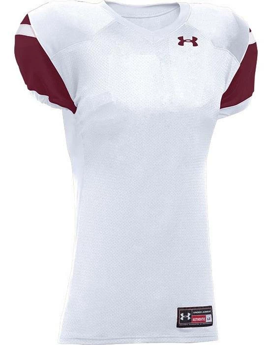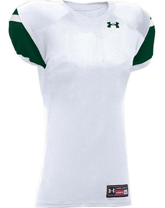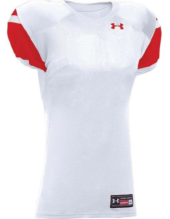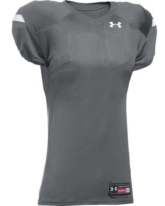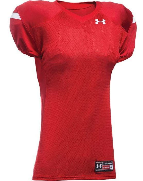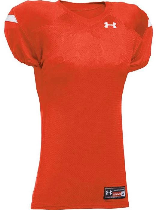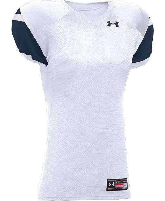 Look sharp on the field with the Under Armour Encounter Youth Custom Football Jersey. Featuring a breathable mesh front and back body with dazzle double ply cowl and set-in sleeves. 4-way stretch knit +panels provide a sleek fit with superior flexibility. Customize it with names, numbers and team logo!