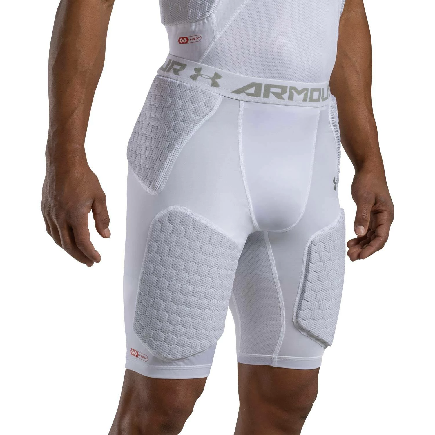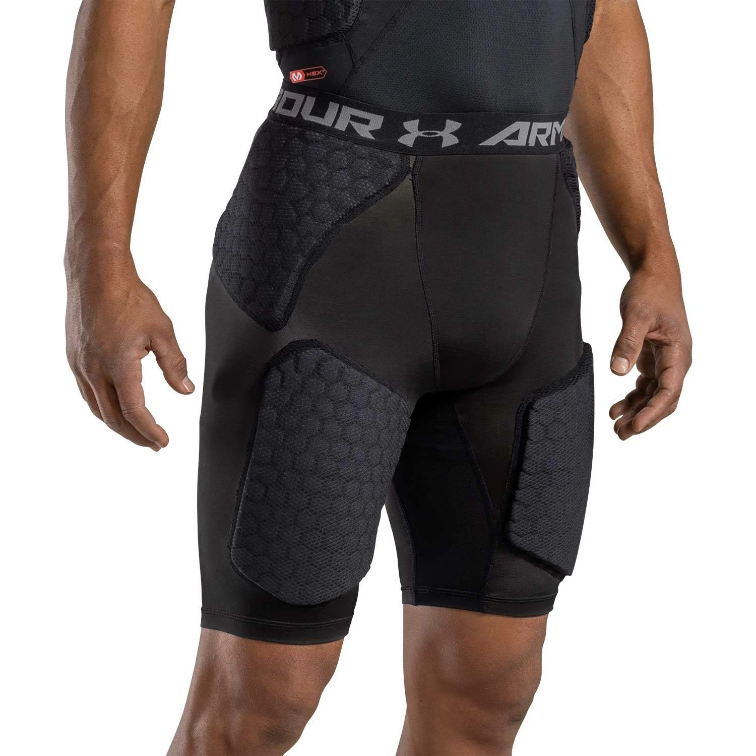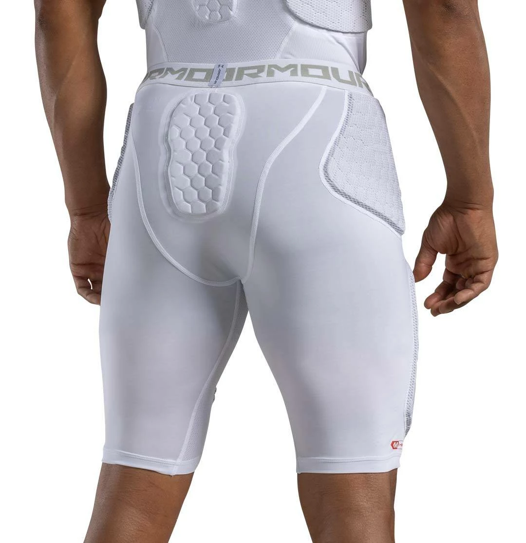 The Under Armour Gameday Armour 5-Pad Adult Football Girdle features patented McDavid Hex technology to provide superior protection while allowing you to move freely and comfortably. Moisture Transport System wicks sweat and keeps +you dry. Compression fit HeatGear supports the muscles and strategic mesh panels deliver ventilation. Sewn in hip, thigh and tail pads plus cup pocket.
